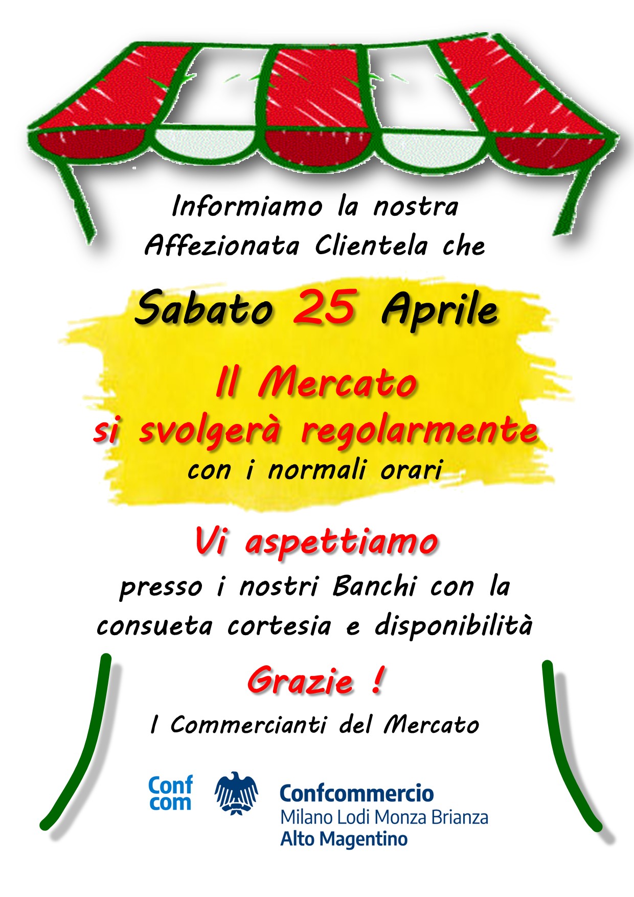 25 aprile 2026: il mercato settimanale si svolgerà regolarmente