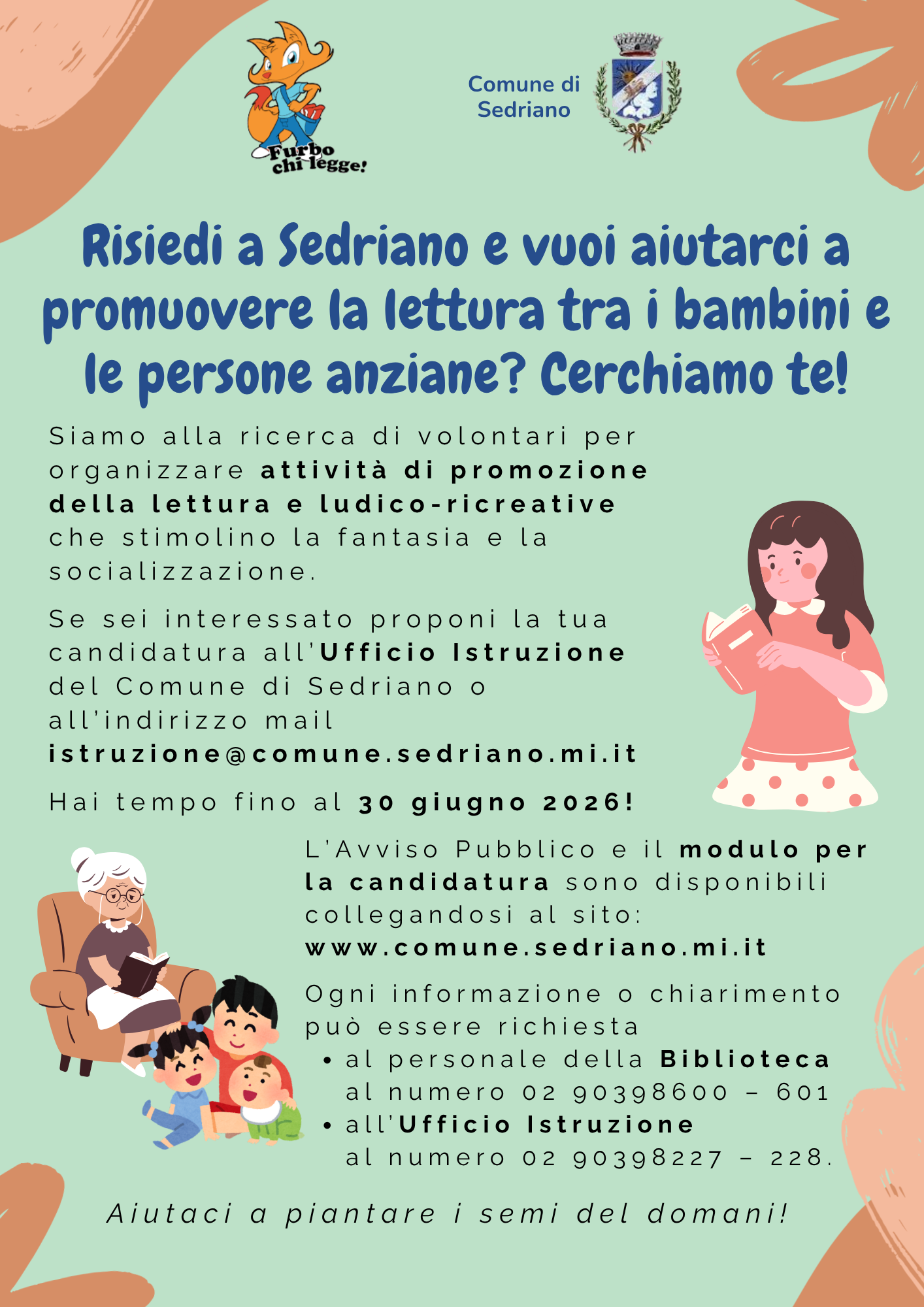 Risiedi a Sedriano e vuoi aiutarci a promuovere la lettura tra i bambini e le persone anziane? Cerchiamo te!
