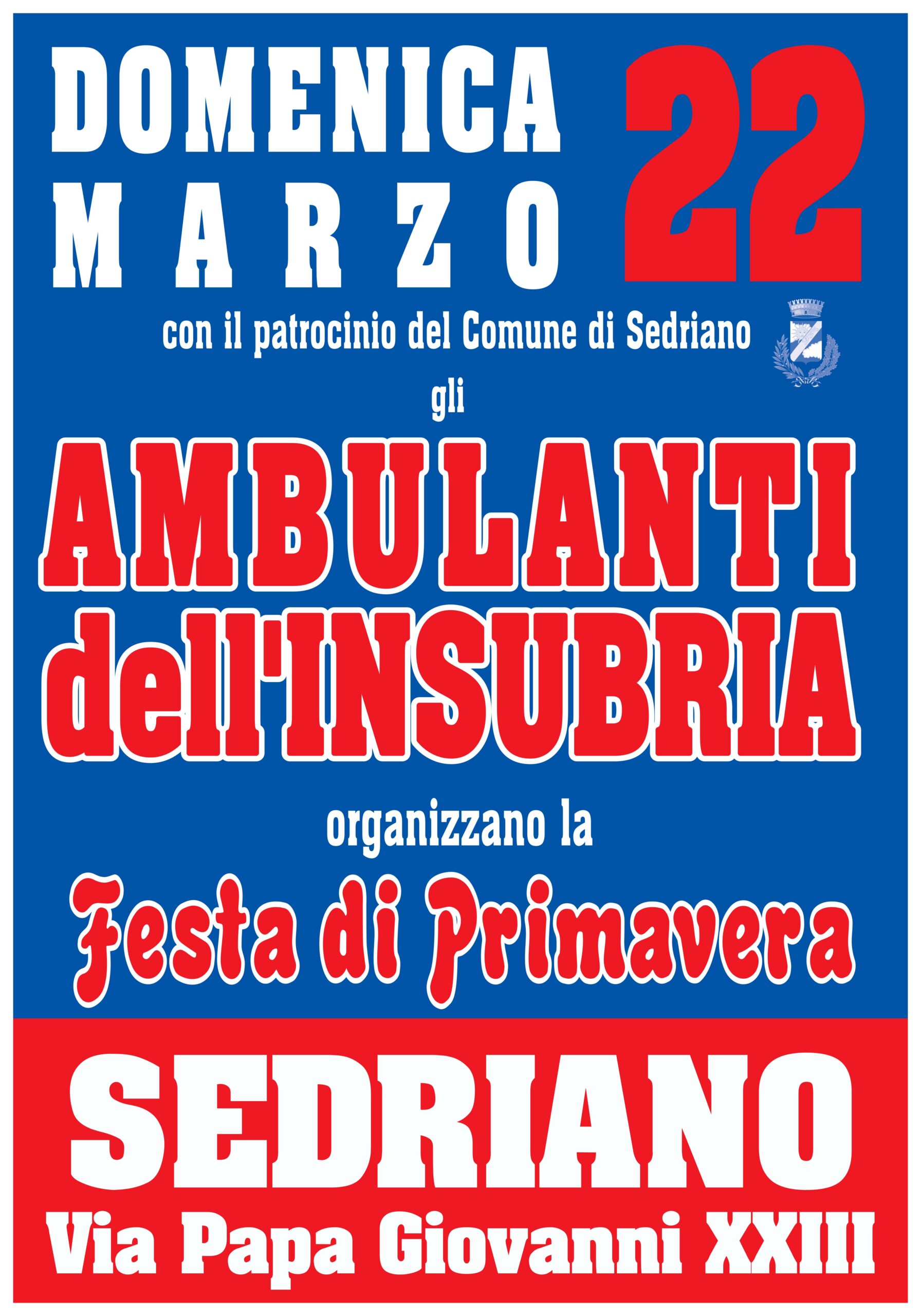 Gli Ambulanti dell’Insubria organizzano la Festa di Primavera con un mercatino domenica 22 marzo 2026 in Via Papa Giovanni XXIII a Sedriano