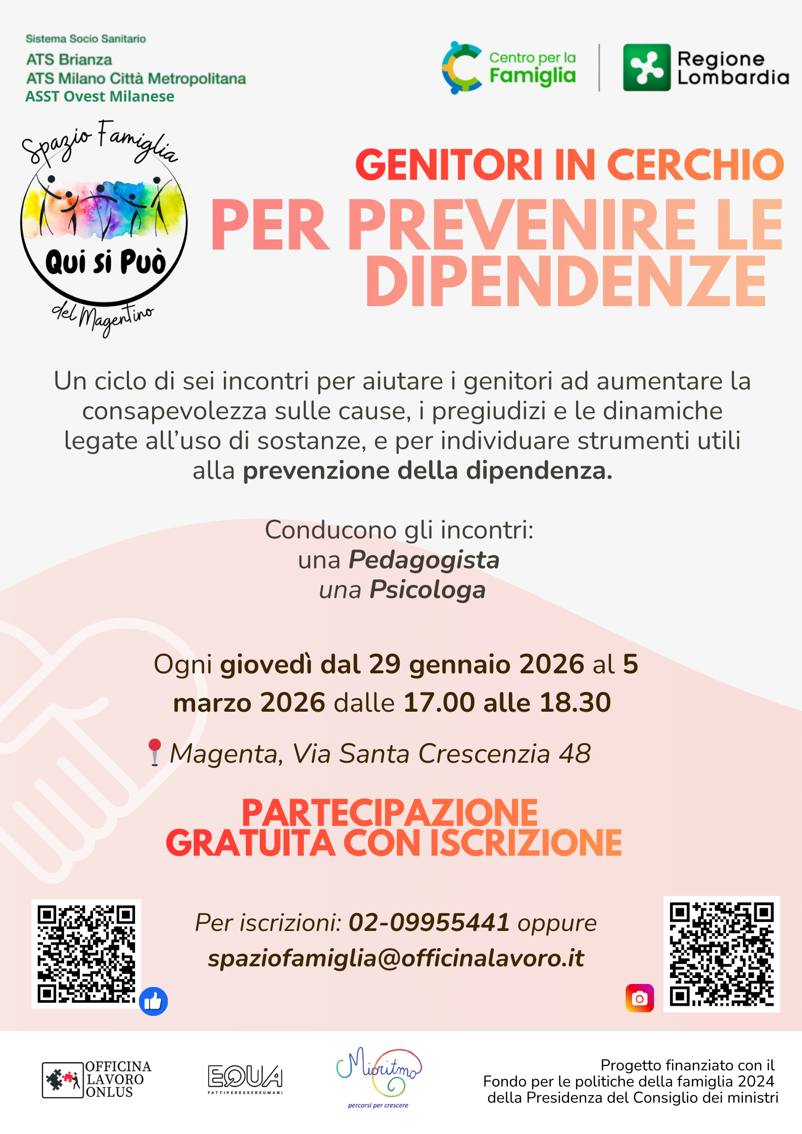 Un ciclo di incontri per aiutare i genitori ad aumentare la consapevolezza sulle cause, i pregiudizi e le dinamiche legate all’uso di sostanze, e per individuare strumenti utili alla prevenzione della dipendenza