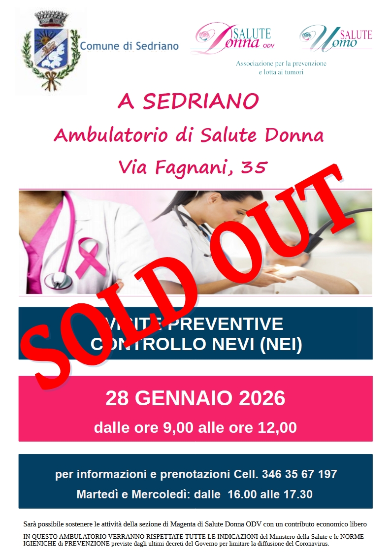 A SEDRIANO - Ambulatorio di Salute Donna. Visite preventive controllo nevi (nei) - SOLD OUT
