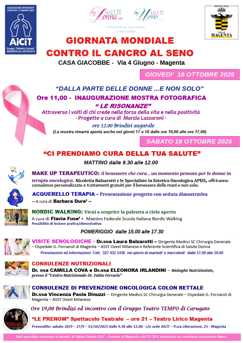 Sarà possibile sostenere le attività di Salute Donna ODV – Sezione di Magenta e AiCiT ODV, attraverso un contributo economico libero.