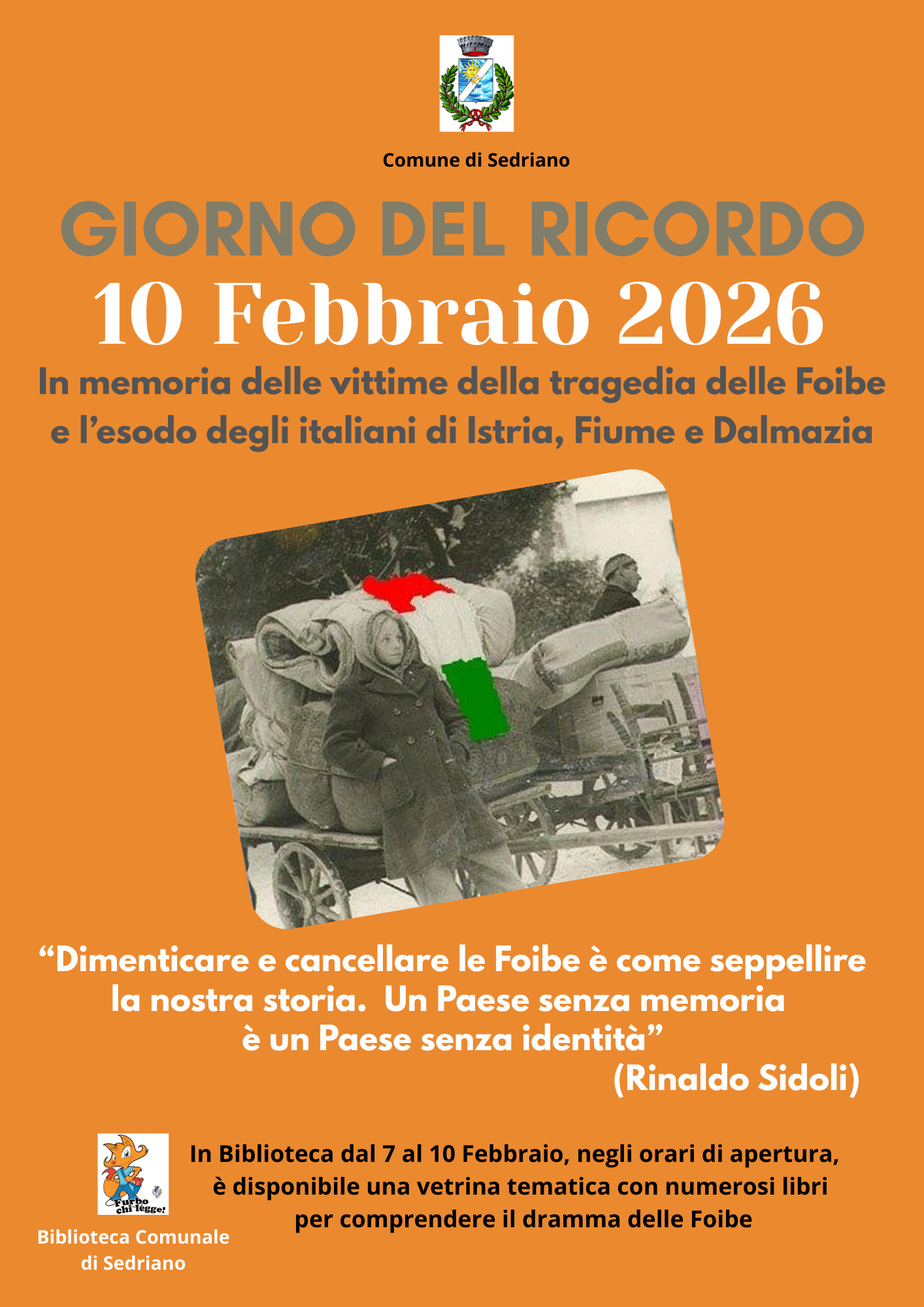 In occasione della ricorrenza, il Comune di Sedriano propone due iniziative di commemorazione e approfondimento storico rivolte alla cittadinanza: