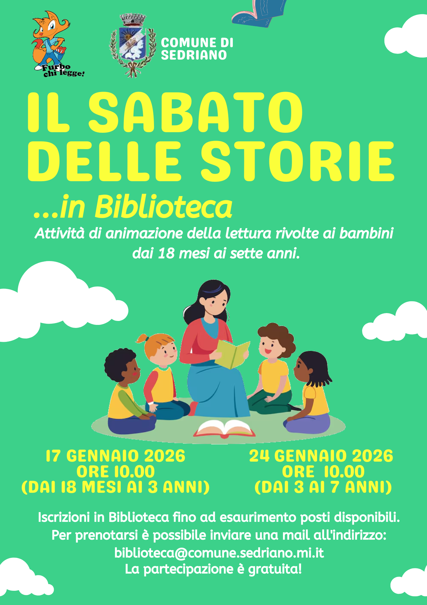 Iscrizioni obbligatorie (sino ad esaurimento posti disponibili) presso la Biblioteca Comunale negli orari di apertura al pubblico