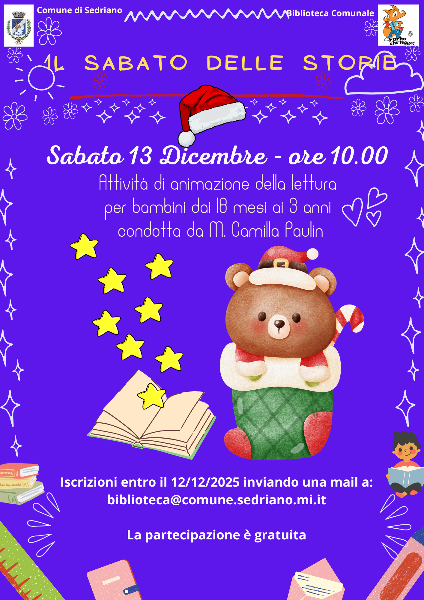 Iscrizioni obbligatorie (sino ad esaurimento posti disponibili) presso la Biblioteca Comunale negli orari di apertura al pubblico entro il 12/12/2025 (max 10 bambini)