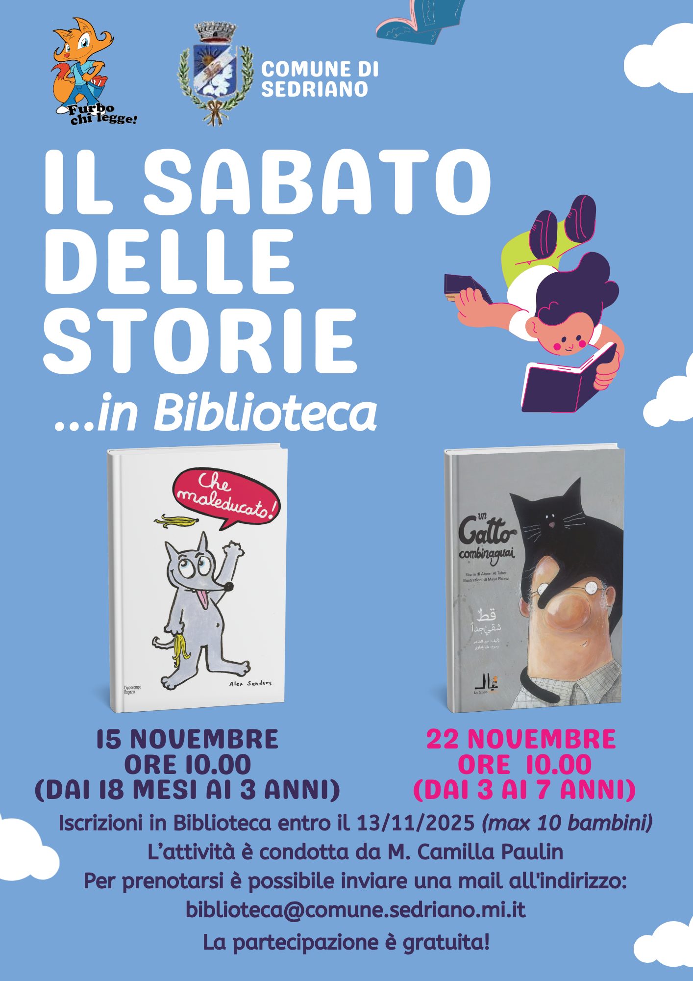 Iscrizioni obbligatorie (sino ad esaurimento posti disponibili) presso la Biblioteca Comunale negli orari di apertura al pubblico entro il 13/11/2025 (max 10 bambini)