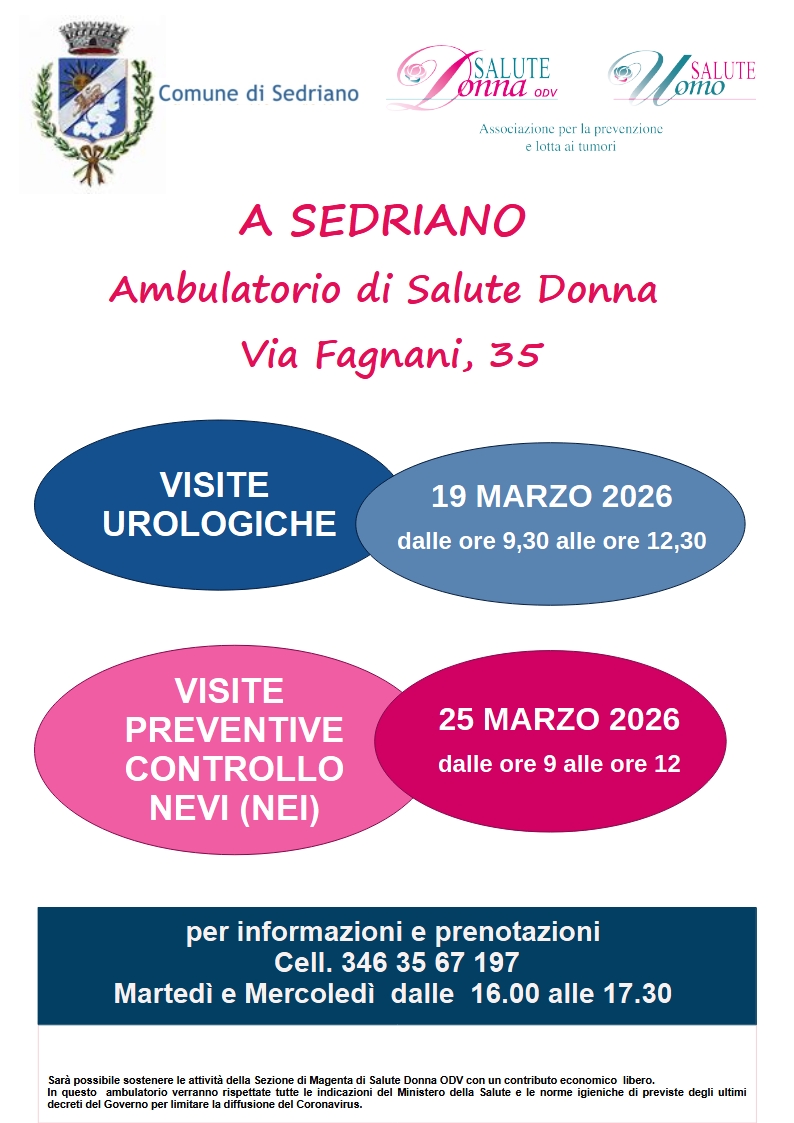 A SEDRIANO - Ambulatorio di Salute Donna. Visite preventive controllo nevi (nei) e urologiche
