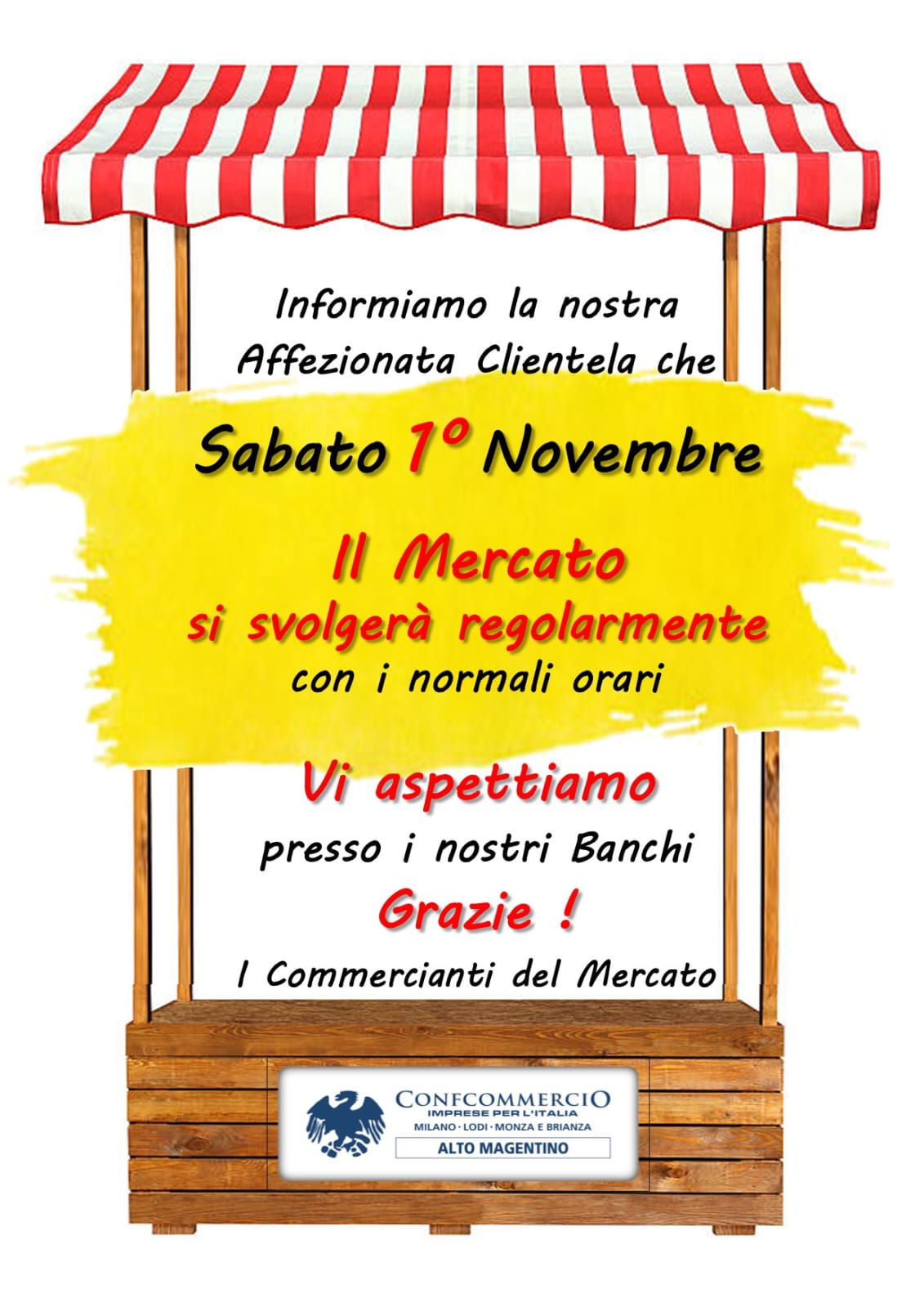 si informano i cittadini che nella giornata del 01 novembre 2025 (Festa di Ognissanti) il mercato settimanale si svolgerà regolarmente